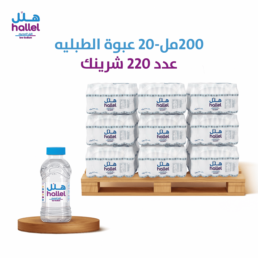 طبلية ماء "هلل" 200 مل تأتي في عبوات عملية 220 شرينك تحتوي على 20 عبوة وهي الحل المناسب للأفراد الذين يبحثون عن طبلية ماء عالية الجودة في أحجام مناسبة لاحتياجاتهم اليومية